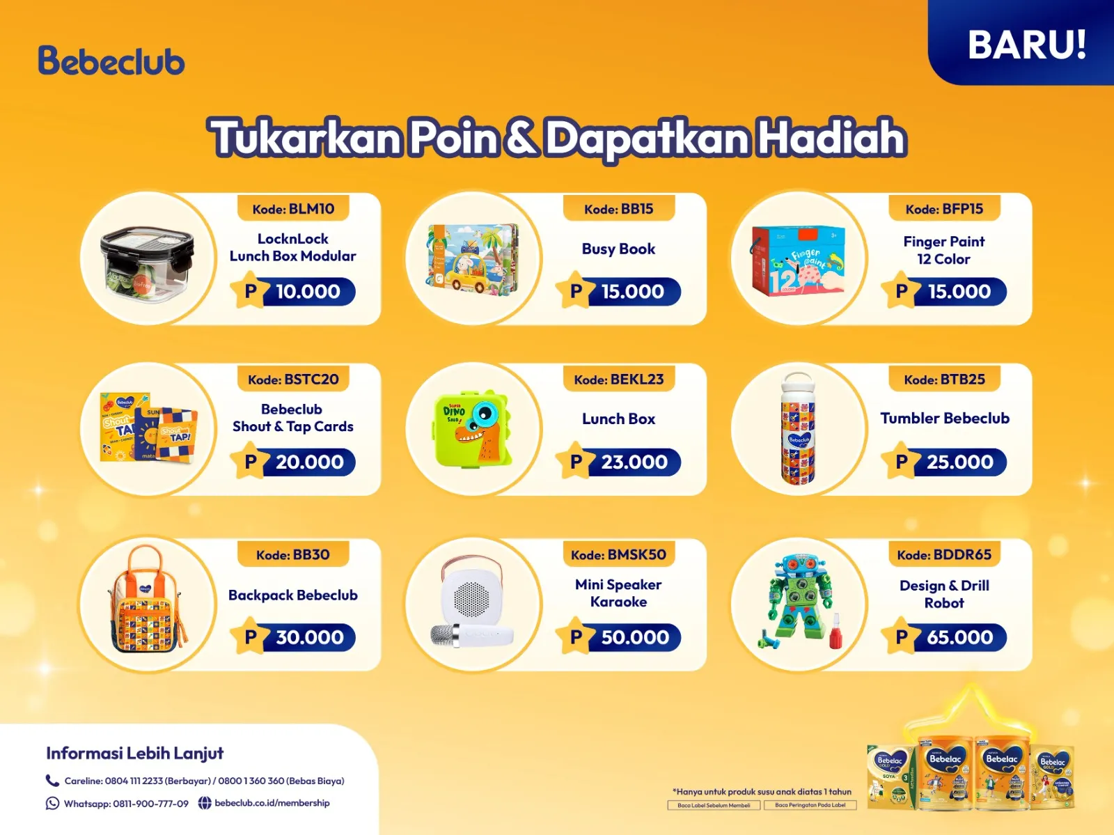 Dapatkan poin untuk setiap pembelian produk Bebelac. Kumpulkan dan tukarkan dengan hadiah hebat pada katalog berikut.